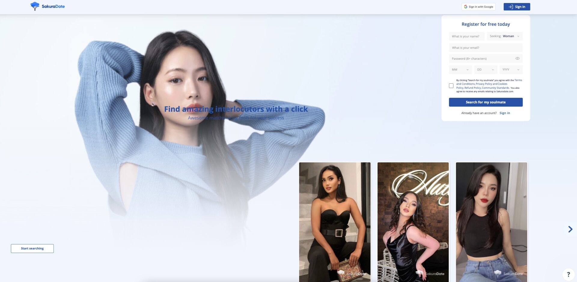 Initially, fill in a basic registration form. You can also start an account with Google – this way it would be also much easier and quicker (might also be more secure to some extent). Then, share some basic details to use the website, and there you are, all prepared to chat with women!
